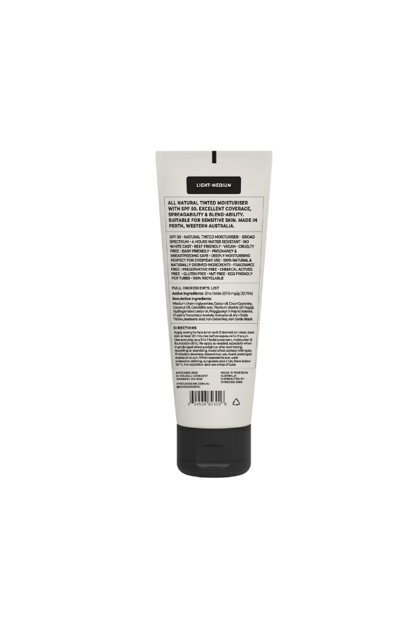 Avocado Zinc SPF50 Natural Tinted Moisturiser - Light/Medium