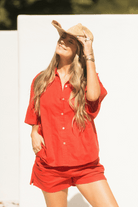 Designed with a modest length in mind so it can be worn over your bikini as a beach shirt dress, or pair with our matching Red Horizon shorts for laid back days out.