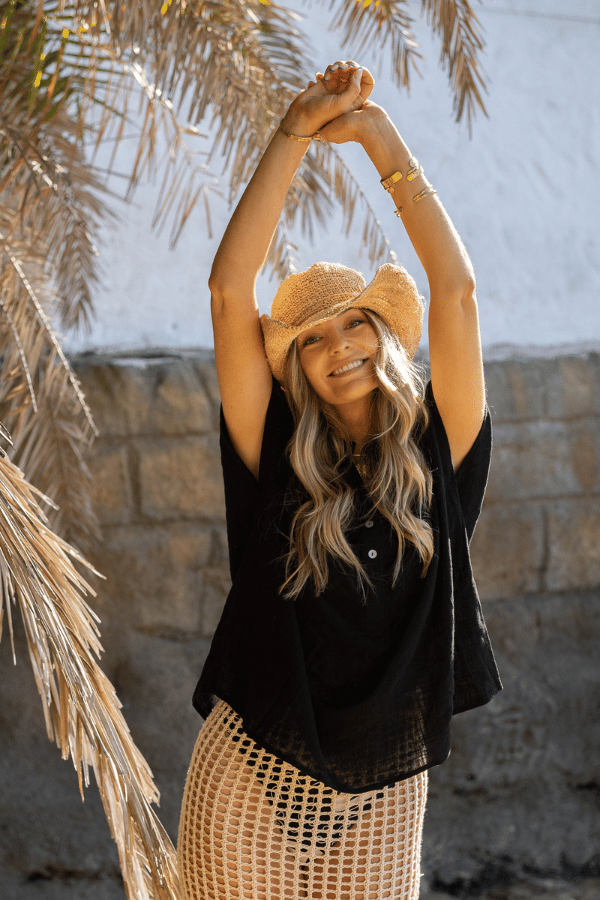 • Versatile styling: pair with denim, linen, or layer over swim