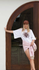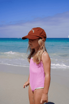 Our signature palms and sun are a unique touch to the back right side and the adjustable strap ensures you get the perfect fit, or to allow for adjustment as your child grows.